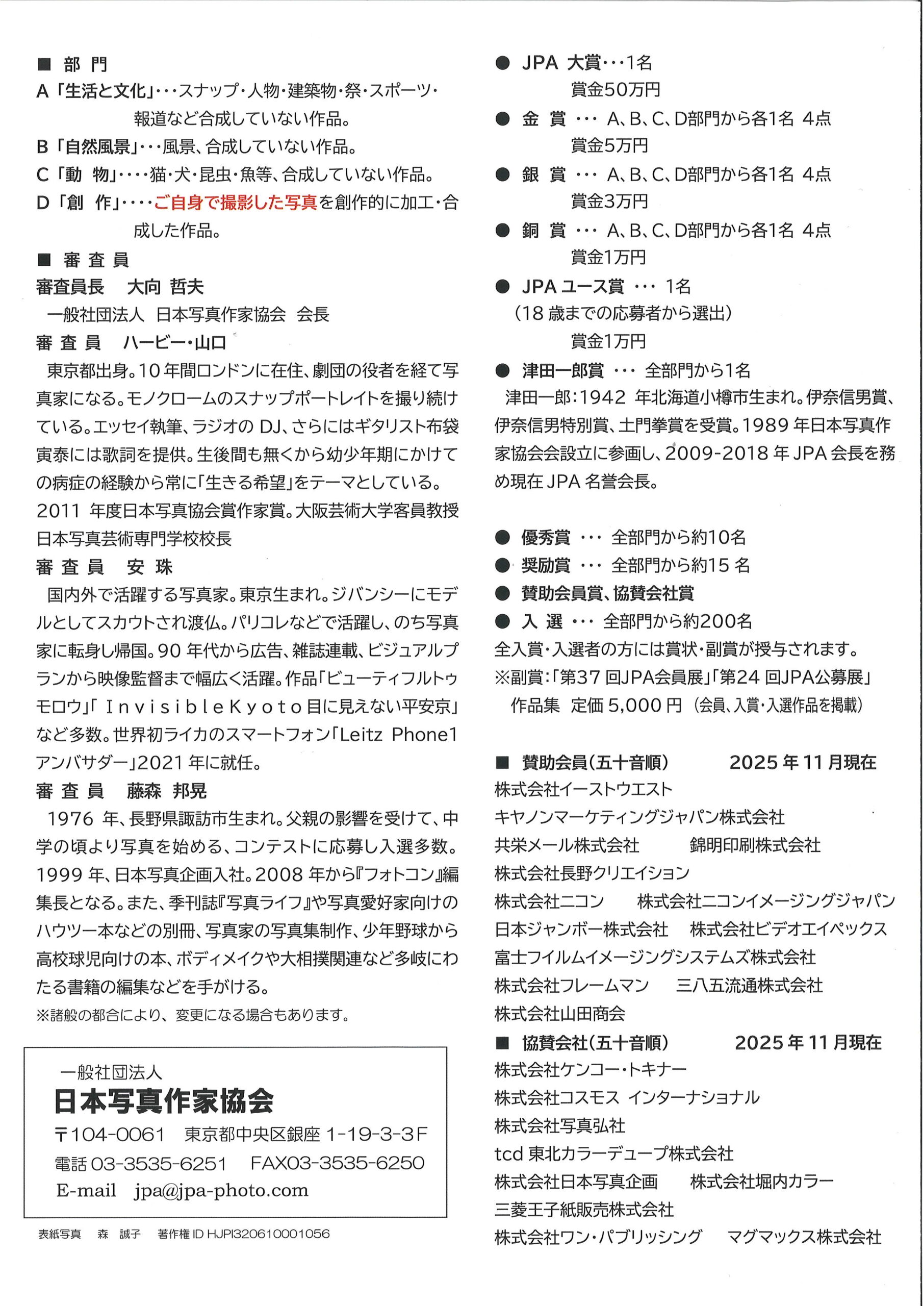 ※副賞:「第37回JPA会員展」「第24回JPA公募展」作品集 定価5,000円(会員、入賞・入選作品を掲載)